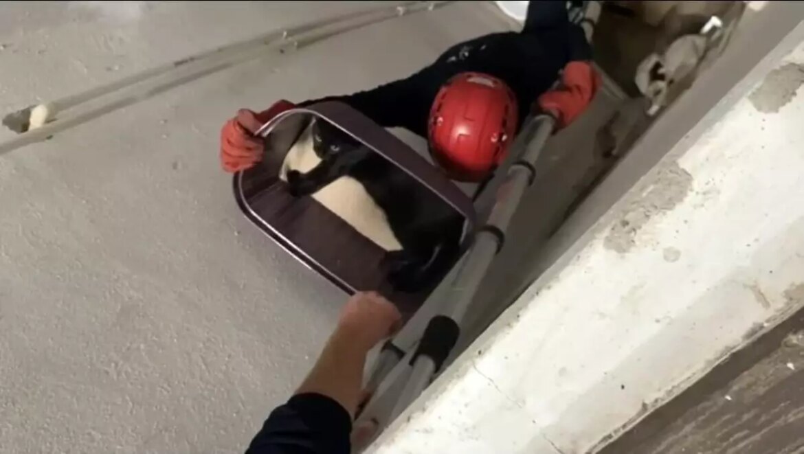 Balıkesir’de beşinci kattan havalandırma boşluğuna düşen kediyi itfaiye takımları uzun süren çalışma sonrası kurtarıldı.